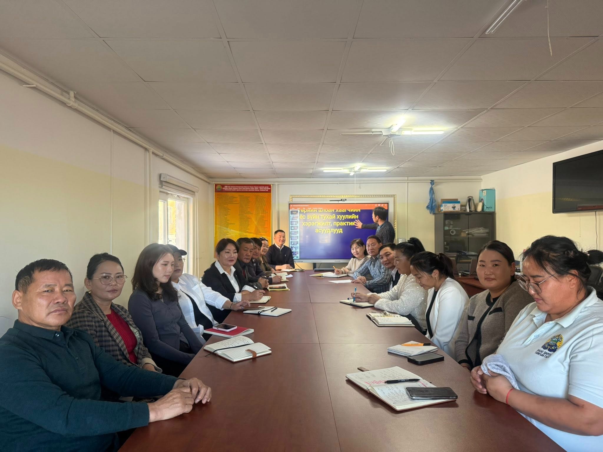 Шударга нийгэм-Бидний оролцоо аяны хүрээнд төрийн албан хаагчдад “Төрийн албаны ёс зүй-харилцаа хандлага”-ын сургалт зохион байгуулах ажлын хүрээнд сумын ИТХ, ЗДТГ-ын мэргэжилтнүүд “Төрийн албаны ёс зүй-харилцаа хандлага”-ын сургалтанд хамрагдлаа.